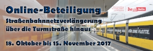 Nach aktuellen Planungen wird die Verlängerung der Straßenbahnstrecke vom Hauptbahnhof bis zum U-Bahnhof Turmstraße Ende 2020 / Anfang 2021 in Betrieb gehen. Die nunmehr im Detail untersuchten Varianten für diese Streckennetzverlängerung werden am 15. November 2017, 19.00 Uhr (Einlass ab 18:30 Uhr) in einer Bürger*inneninformationsveranstaltung der BVG erläutert. Im Hinblick auf die langfristige Netzentwicklung ist der vorläufige Endpunkt am U-Bhf. Turmstraße nur als Zwischenschritt zu betrachten.