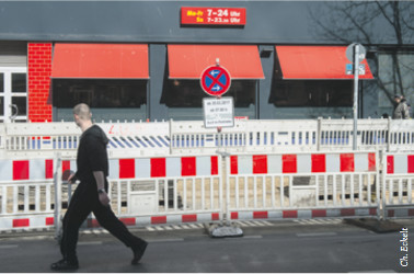 Die Umsetzung von Verkehrskonzepten ist ein mühsames Unterfangen – in Berlin schlechthin und in Moabit konkret. Mehr als fünf Jahre hat es beispielsweise gedauert, bis die Neugestaltung der Gehwege entlang der Turmstraße beginnen konnte. Ein wesentlicher Grund dafür ist die Kompetenzverteilung für Genehmigungsverfahren zwischen Senats- und Bezirksverwaltungen. Während beispielsweise für Baumaßnahmen in Nebenstraßen Anordnungen der bezirklichen Straßenverkehrsbehörde ausreichen, ist bei den Hauptstraßen die übergeordnete »Verkehrslenkung Berlin« (VLB) des Senats zuständig – und die ist bekanntlich notorisch überlastet, wodurch es in den letzten Jahren zu erheblichen Verzögerungen kam: oft nur deshalb, weil nur noch die eine oder andere formale Genehmigung oder Baustellenfreigabe fehlte.
