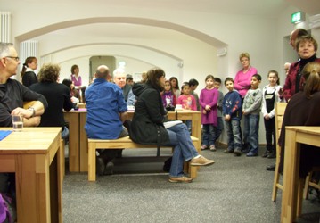 Kinder der Schulanfangsphase bedankten sich mit einem selbst gedichteten Lied: “…mit viel Kraft, mit viel Kraft, die ganze Arbeit ist geschafft – oh wie fein, wir laden euch zur Party ein!“