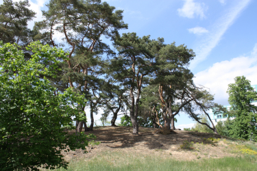 Auf dem SUZ-Gelände stehen noch ein paar hölzerne Stände vom Tag der Offenen Tür Anfang März, der sehr gut angenommen wurde. Am 18. März hat der Bezirk Mitte hier seinen Umweltpreis verliehen. Zwischen den Informationen ruft Bettina Stender einem ihrer drei Lehrlinge einen Hinweis zu. Sie selbst ist ein „alter Hase“, hat Zierpflanzengärtner von 1981 bis 83 in Weißensee beim damaligen VEG Gartenbau gelernt. Den Garten in der Scharnweberstraße übernahm sie 2020. Gegründet wurde er in den Jahren 1949/50. Bettina Stender zeigt auf die Kiefern, die malerisch auf einer Erhebung wachsen. Da werden Erinnerungen an Ferien an der Ostsee wach. Diese eiszeitliche innerstädtische Düne ist ein vom Natur- und Umweltschutzbund NABU betreutes Naturdenkmal. Dort hinauf dürfen Kinder und Besucher nur mit einer Führung.