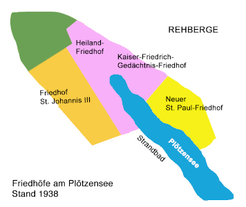 St. Paul am Gesundbrunnen folgte mit ihrem neuen Friedhof nur wenige Jahre nach St. Johannis am gegenüberliegenden Seeufer. Als sich die Heilandsgemeinde 1896 aus der Muttergemeinde St. Johannis heraus gründete und Bestattungsflächen brauchte, grenzte deren Friedhof ab 1898 östlich an St. Johannis III. Zwischen dem Heilandsfriedhof und dem von St. Paul lag ab 1901 zudem die vergleichsweise kleine Bestattungsfläche der Kaiser-Friedrich-Gedächtnis-Gemeinde, die sie 1902 noch um Promenierwege und Schmuckplätze erweiterte. Ab 1903 wurden die Friedhöfe der Heilandsgemeinde und der Kaiser-Friedrich-Gedächtnis-Gemeinde zusammen verwaltet und betrieben. Die einzelnen Bestattungsflächen der Gemeinden waren durch Zäune getrennt und durch Pforten verbunden. Diese führten aber häufig zu einem die Kirchhofsruhe störenden Durchgangsverkehr in die Rehberge und zum Schießstand im Dohnagestell. Sie wurden deshalb verschlossen und aufgrund von Protesten stets wieder geöffnet.