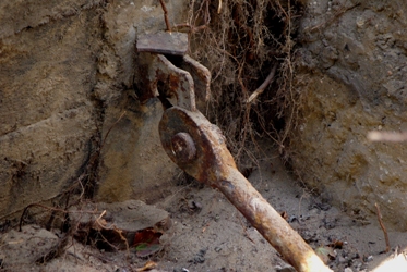 Mitnichten. Wer sich aufmerksam die seit über einem Jahr offene Baugrube in der Nähe der Tile-Wardenberg-Straße angesehen hat, der wird vielleicht den Ernst der Lage bemerkt haben. Dort konnte man nicht nur eine gerissene und später geschweißte Halterung einer Ankerstange sehen, sondern die hohe Uferwand weist einen langen Riss auf und ist auf der Länge eines Feldes Richtung Wasser verschoben. Die beiden Bilder zeigen den Anker und den Riss. Warum droht dort nun Gefahr?