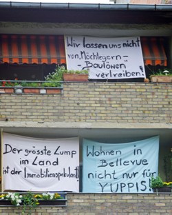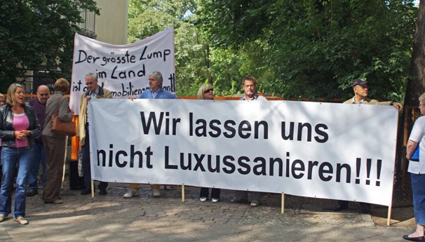 Am 1. September fand ein Aktionstag vor der Calvinstraße 21 statt. Aus diesem Haus sind bereits einige Mietparteien vertrieben bzw. rausgekauft worden. Doch die anderen wehren sich, sie wollen sich nicht verdrängen lassen. Mieter/innen waren mit Transparenten auf der Straße, die für zwei Stunden gesperrt war. Auch das Haus war entsprechend "geschmückt". Thomas Isenberg (MdA) und Dr. Günter Möstl, Physiker aus Potsdam, hielten Reden. Sie forderten die Bewohner/innen auf, sich nicht einschüchtern und vertreiben zu lassen - niemand dürfe sie aus ihren Wohnungen verjagen, weil Spekulanten maximale Gewinne erzielen wollen. Gesangdarbietungen der in der Nachbarschaft wohnenden Sängerin Kim Seligsohn lockerten die Veranstaltung auf. Die Anwohner des Hauses halten jetzt regelmäßig engen Kontakt und werden in ihren Aktivitäten auch von vielen Anwohnern unterstützt. Für die Zukunft ist an die Einrichtung einer regelmäßigen Mahnwache gedacht, zumal weitere Anwohner/innen und Passant/innen sehr positiv auf die Aktion reagierten.