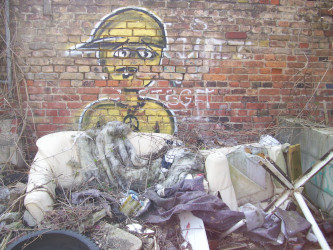 Heute ist das alte knapp hinter der Mauer zu den Kleingärten stehende Backsteinhäuschen abgerissen worden. Seit vielen Jahren haben hier immer wieder Obdachlose eine zeitweilige Bleibe gefunden. Im Niemandsland. Seit einiger Zeit campierten Familien dort und erweiterten die Behausung mit einigen Zelten. Sie sollen von einem anderen Bahngelände vertrieben worden sein. Das Essen wurde auf einem Grill zubereitet. Abends loderte ein kleines Feuer. Die Müllhalde allerdings ist auch größer geworden.